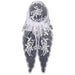 This aesthetic scarf features sheer embroidered lace with scalloped trim and ribbon tie. Wear it on your head. around your neck. in hair. or as a belt