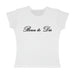 This aesthetic top featuring a fitted baby-tee shape with soft short sleeves. a smooth stretchy fabric. and a clean cursive “Born To Dieâ€?script across the chest