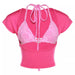 Short-sleeve top with pink bikini top
