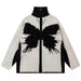 This aesthetic fleece jacket features a bold butterfly patchwork design. soft fuzzy texture. and a high collar with contrast panels for added warmth