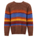 This aesthetic sweater features bold multicolor stripes and a soft. fluffy knit construction