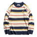 This knit sweater with a rounded neckline and a striped print features a cute croissant embroidery on the front