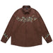 This Earthcore Aesthetic shirt features delicate floral embroidery on soft corduroy fabric