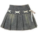 This denim mini skirt features a pleated silhouette. lace-up satin ribbon details. and a flattering high-rise waist