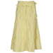 This maxi skirt features a tiered. flowy silhouette with a soft pastel yellow hue