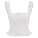 This white corset top with lace-up front. wide lace straps. and a ruffled hem. perfect for cottagecore. coquette. or soft girl aesthetic outfits