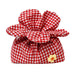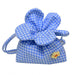 This cute mini bag features gingham fabric. charming flower-petal shape. and a dainty embroidered detail