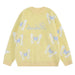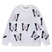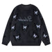This fuzzy sweater features butterfly patterns and a loose. oversized fit