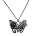This grunge butterfly necklace combines mechanical gear details. sculpted metal wings. crystal accents