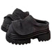 These chunky platform mules feature a bold slip-on design. oversized silhouette. and rugged sole. blending streetwear edge with everyday comfort