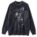 This aesthetic oversized sweater features an artful angel motif on a cozy. textured knit background