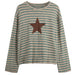 This aesthetic longsleeve featuring green horizontal stripes with a bold front star graphic. The crewneck design. relaxed oversized fit. and straight hem make it a casual standout piece. balancing playful print with simple construction