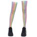 This aesthetic knee-highs featuring holographic rainbow shine. fishnet texture. and glossy top bands