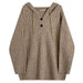 This cozy knitted hoodie features a ribbed construction and a front button-up closure