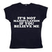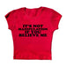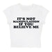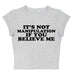 The Baby Tee features a playful statement print. "It's not manipulation if you believe me" on a soft blue fabric. This crop top offers a fun and cheeky addition to your casual wardrobe