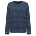 This aesthetic striped long sleeve tee featuring navy and light blue horizontal stripes with small star details at the cuffs