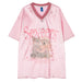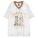 This aesthetic satin jersey t-shirt features a puppy and kitten print. star-studded V-neckline with rhinestone accents. and oversized fit