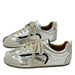 This aesthetic pair of retro sneakers featuring a mix of suede and faux leather panels with contrast side detail