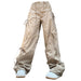 These stylish wide-leg cargo pants features adjustable drawstrings. ruched details. and multiple pockets. offering a trendy streetwear vibe