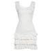 This aesthetic mini dress channels balletcore with a ribbed bodice. scoop neckline. and delicate bow detail. Finished with layered ruffle tiers at the hem in soft fabric for a graceful. airy look
