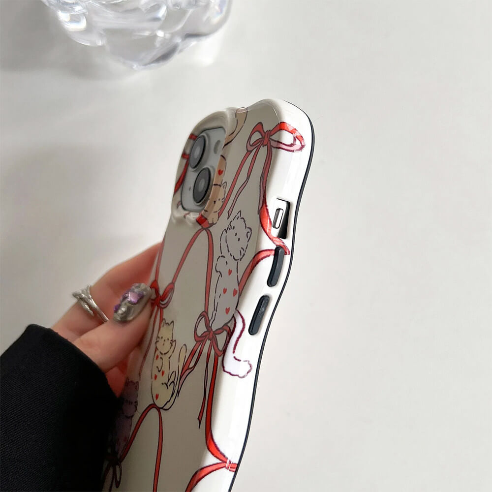 This iphone case features a glossy finish with adorable kitten and ribbon prints. offering coquette charm and durable protection for your device