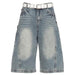 This wide-leg jean featuring a vintage faded wash. cropped culotte length. and soft structured denim. Mid-rise waist with belt loops and classic five-pocket construction