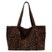 This aesthetic tote bag featuring oversized shape. brown leopard print fabric. and long shoulder straps