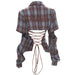 This edgy plaid crop shirt features a lace-up open back. raw sleeve accents. and a rebellious grunge vibe
